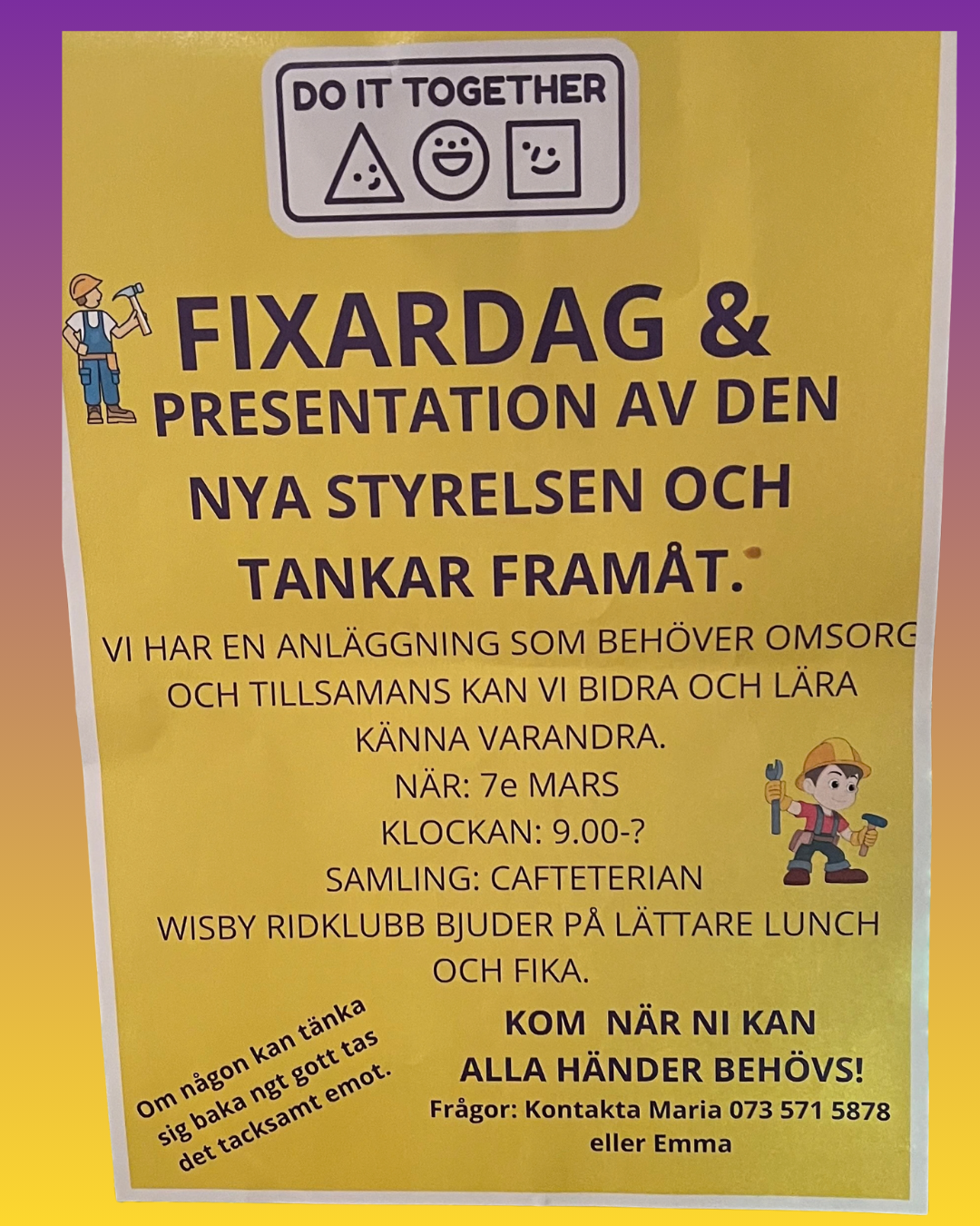 Fixardag& presentation av nya styrelsen